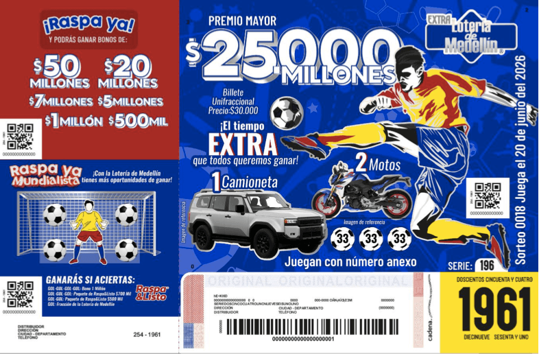 La Lotería de Medellín anunció su Sorteo Extraordinario del 20 de junio de 2026. El premio mayor será de $25.000 millones. El plan total de premios alcanza los $75.000 millones. La entidad quiere posicionar esta edición como una de las más atractivas del país. También busca ofrecer más oportunidades a los jugadores.